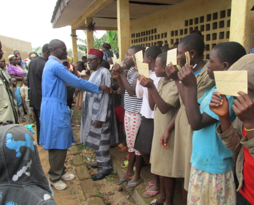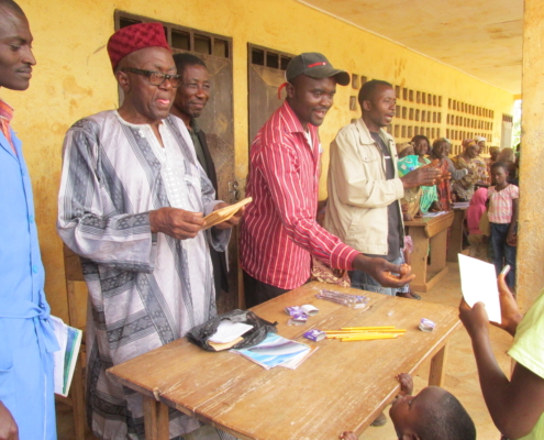 Seit 2009 leitet Afrika-Solidarity das Programm 1Kind-1SchulSet. Dabei werden Schulsets während des Besuchs eines unserer Freiwilligen vor Ort oder in Partnerschaft mit Lehrern und Elternvertretern zusammengestellt und verteilt.