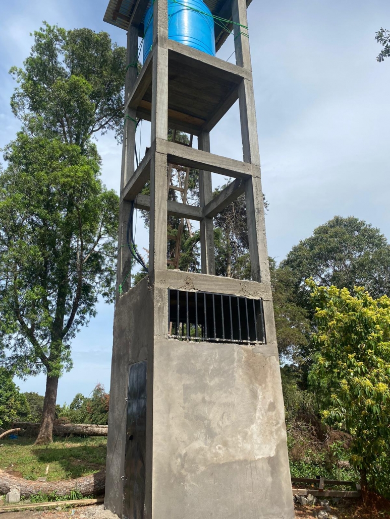- Ungefähr 3.000 Dorfbewohner, d.h.ca. 75% der Familien, werden regelmäßig mit hygienisch einwandfreiem Trinkwasser durch die neue moderne Wasseranlage versorgt. Der Wasserturm ist mit einem 3.000L Tank ausgestattet, der viermal täglich von der Pumpe vollgefüllt wird und somit eine tägliche Wassermenge von 12.000 Litern sicherstellt. Der Wasserbedarf für die Landwirtschaft wird voraussichtlich weiterhin aus Flüssen stammen.